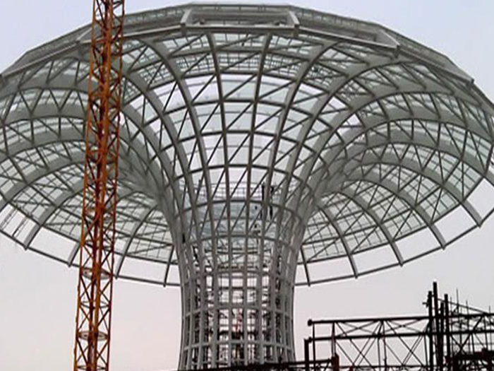 二、球形网架结构因其结构新颖,受力合理,自重轻、用钢量低等优点。如大型体育场馆球形金昌螺栓球网架、公共场馆球形网架、电厂金昌螺栓球网架、水泥工业球形网架、仓储物流球形网架、金昌干煤棚工业球形网架、金昌收费站金昌加油站球形网架、展览中心、影剧院、商场、航站楼、候车厅、工厂金昌车间、仓库、电视塔等球形螺栓球节点网架。国内球形网架结构主要分为:金昌焊接球节点网架及螺栓球节点网架两种。螺栓球节点网架其构件工厂内加工量较大,现场安装便捷,适用于现场工期紧,金昌施工条件、用电量受制约,网架形状复杂、金昌杆件定位困难的异形结构。螺栓球节点球形网架系统基本由金昌杆件、螺栓球、支撑支座等组成。按照节点形式可分为交叉金昌桁架体系、四角锥体系、三角锥体系等。支撑方式多为固定支座支撑。对于大面积、大跨度及有特殊受力或伸缩要求的网架结构可采用橡胶支座、滑移支座、球铰支座等支撑形式,以满足结构自身的受力稳定、均衡,便于内力释放等设计要求。